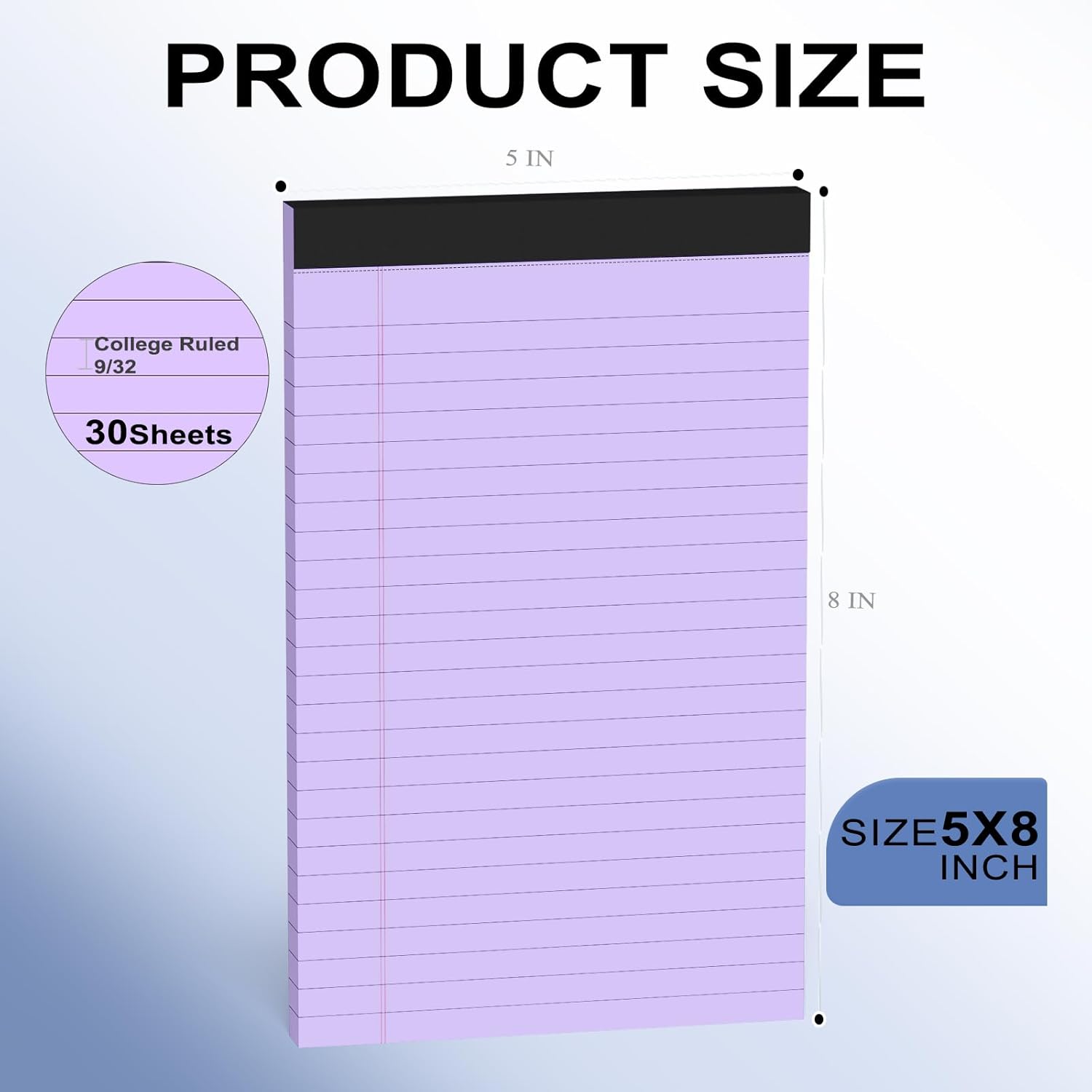 - WIDE APPLICATION:. The 5x8 notepads are perfect for writing on the go, a must-have for school, office, and home. 5x8 inch College ruled notepads create reminders, to-do lists, notes, and more. Carry your shopping list with you, or keep your to-do list in your pocket.