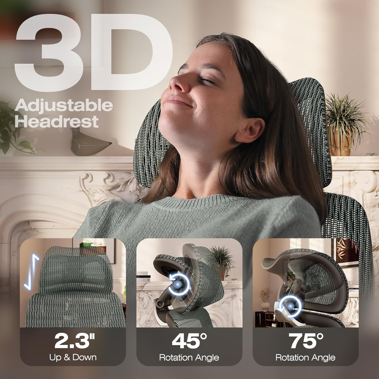 - 【Your All-Day Comfort Solution】 Premium Ergonomic Desk Chair with Footrest featuring dynamic 3D lumbar support, 5D Flip-Up Armrests, and extra-wide 3D breathable headrest, 2-position angle foot-rest, perfect for home office chairs seeking ultimate comfort