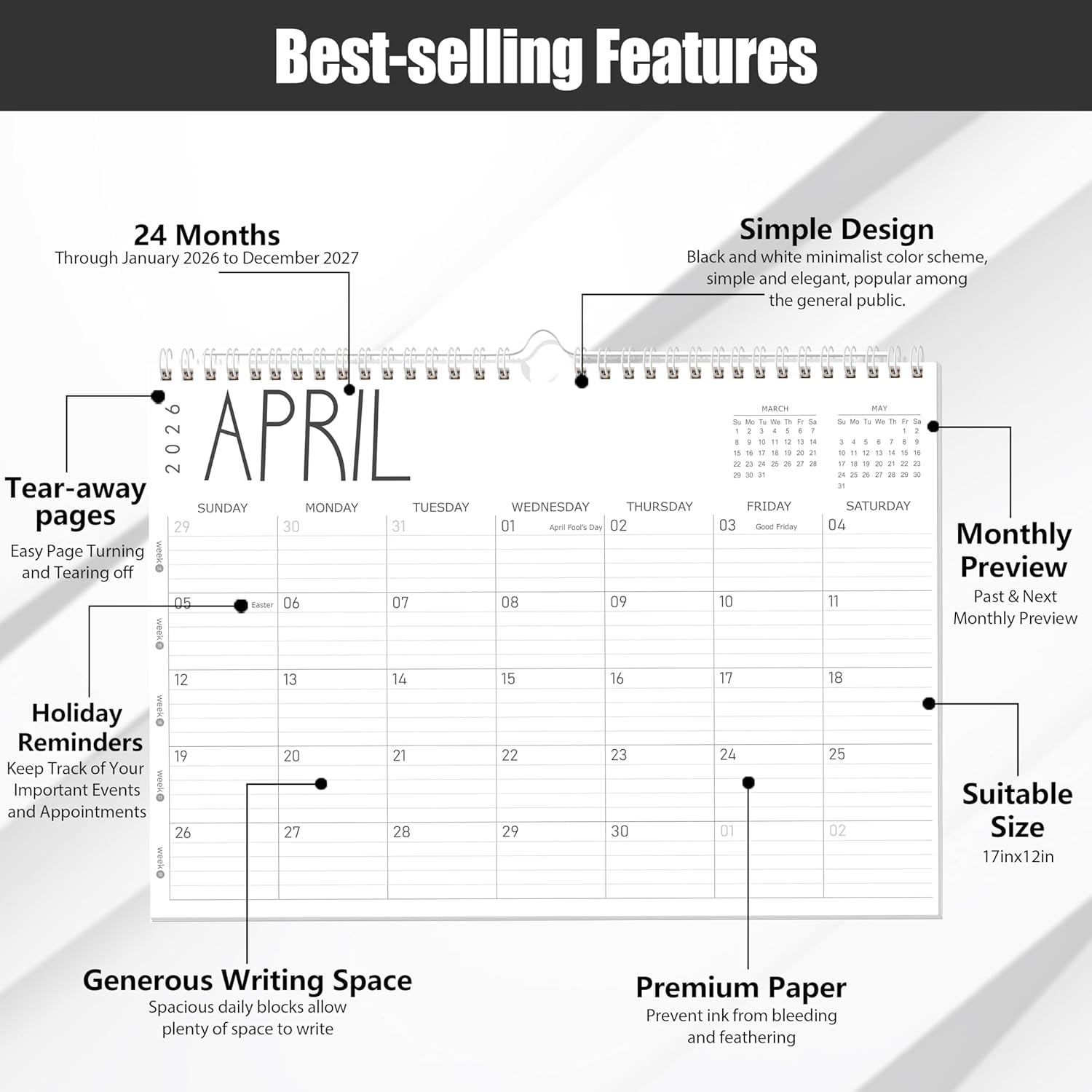 - Upgraded Paper for Better Writing: Made from thick, 120GSM high-quality paper, this monthly calendar 2026-2027 resists ink bleed-through and smudging. Whether you use pens, pencils, or highlighters, your writing stays clean and easy to read. A reliable choice for those who need a durable, clean calendar 2026 planner for daily use.