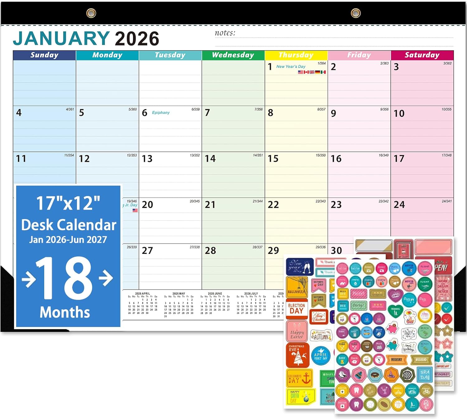 2026 Desk Calendar - 18 Monthly Calendar 2026-2027, Jan 2026 - Jun 2027, 17" x 12", Large Desk Calendar 2026-2027 with Thick Paper, Large Blocks, Stickers, Home or Office Calendar for Easy Organizing