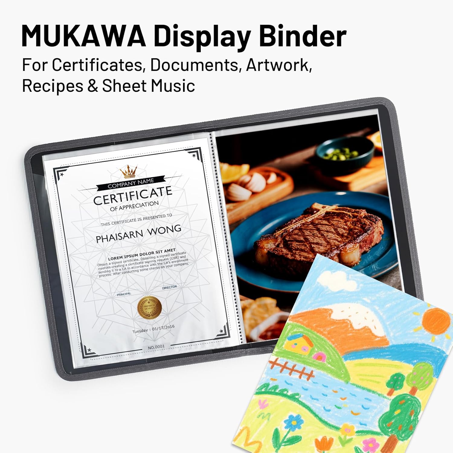 - Acid-Free Poly for Long-Term Protection: Mukawa display book with archival-safe, non-stick PP sheet protectors (top-loading) to prevent ink transfer; each pocket holds up to 10 letter-size pages—ideal presentation book/portfolio folder for documents.