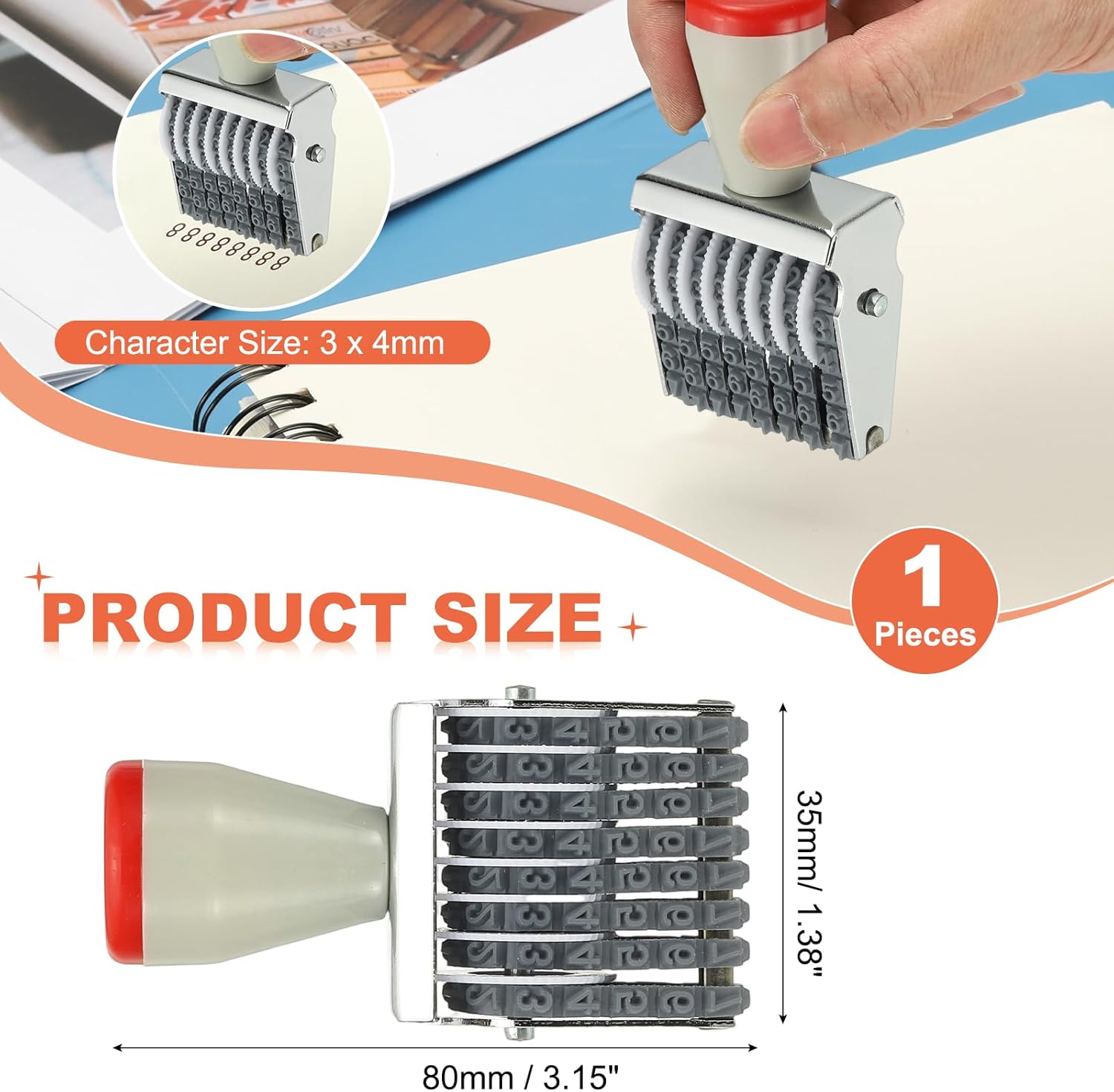 PATIKIL 8 Digit Number Roller Stamp, Adjustable Rubber Stamp Changeable Numerical Symbol Office Date for Business Creative Price Tag