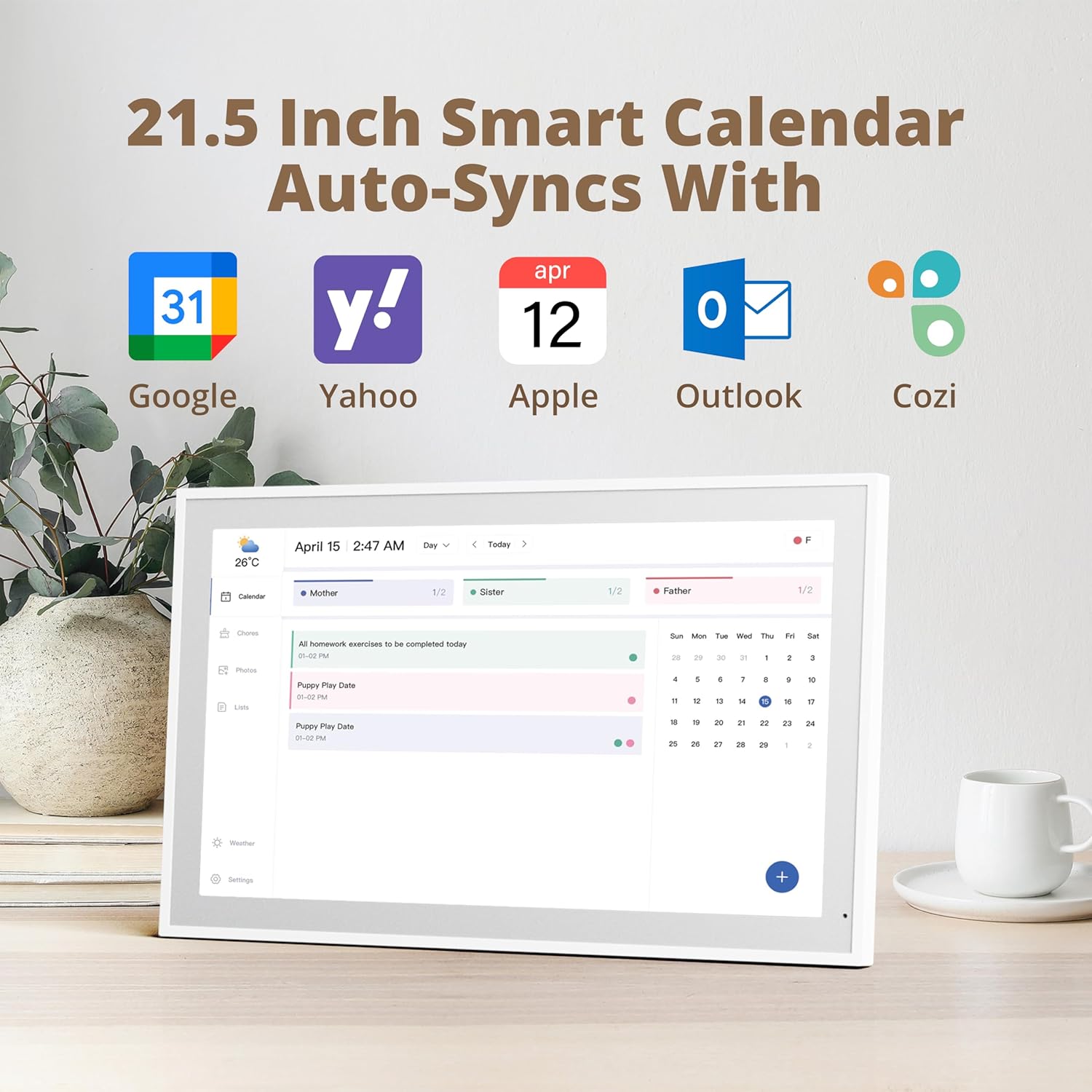 - 【Easy Setup and Auto-Sync】: Enjoy a user-friendly design that our smart picture frame allows for quick setup—just plug in, connect to Wi-Fi, and link your calendar to the Mobile App. Once synced, it seamlessly integrates multiple personal calendars (iOS, Google, etc.) into one unified interface. Authorize additional devices for even greater convenience.