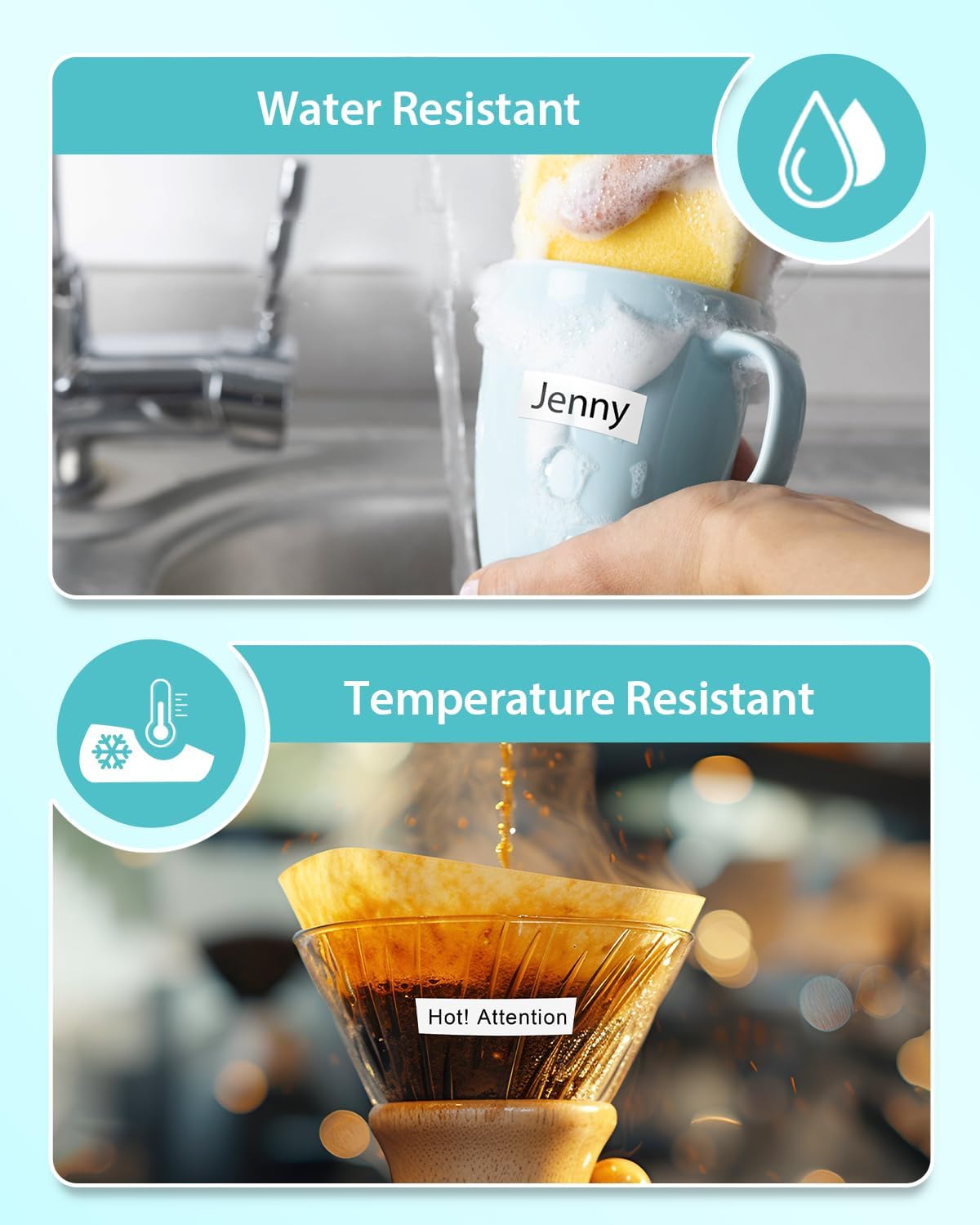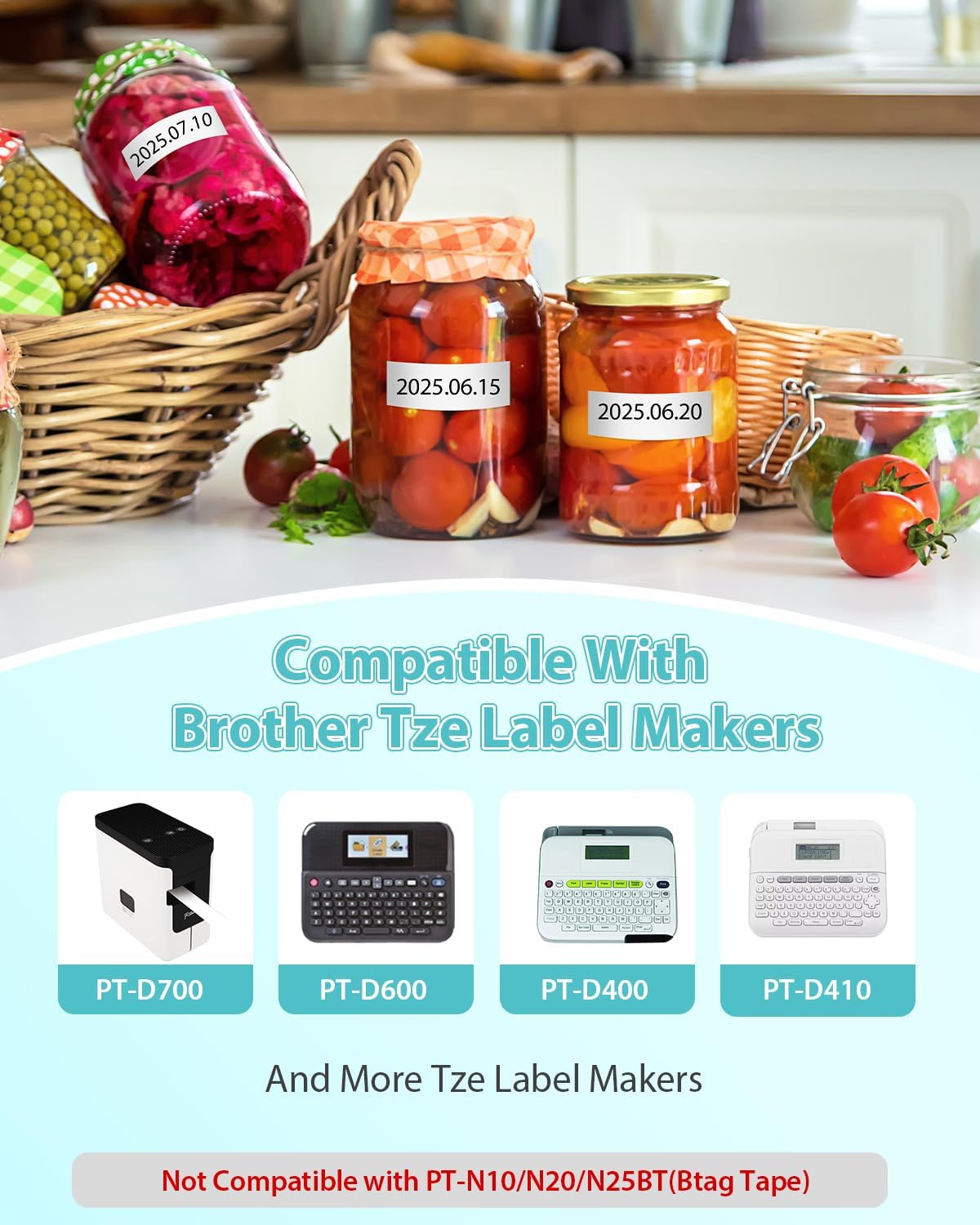 - Feature: The tze-241 label tape compatible for brother ptouch label maker tape tze 18mm 0.7inch laminated white, Split backing for easy peeling, Water Resistant, Fade Resistant, Abrasion Resistant, Chemical Resistant, Temperature Resistant, Print clear labels