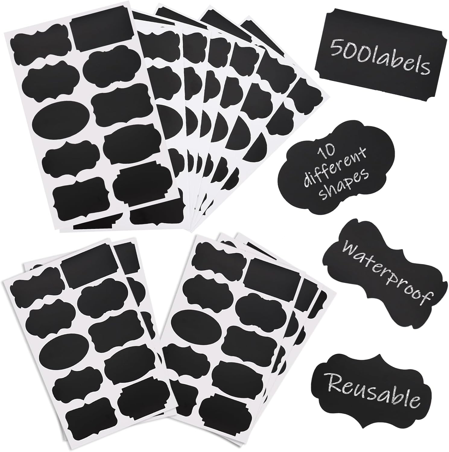 - Super Value Set: Includes 500 pieces of chalkboard labels of different shapes, with each label measuring 2.4*1.6inch. High-quality PVC material, reusable multiple times, not easy to tear or fall off. Whether for home kitchens or commercial use, these labels for jars can provide you with the perfect solution.