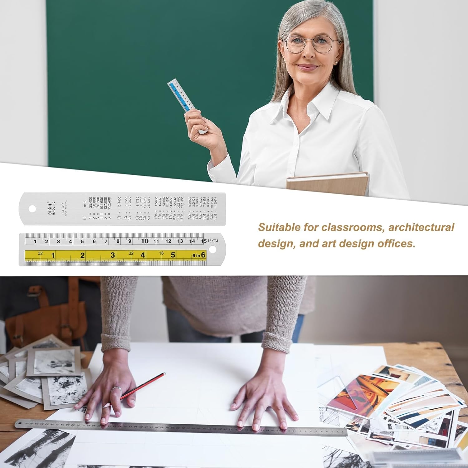 - Feature - The ruler features ink printing technology on its surface, ensuring that the scale is clear and sharp, remaining non-fading and non-blurring even after long-term use. It has a dual-scale design, and the back is carefully printed with a complete set of conversion formula for metric and SAE units, allowing beginners to quickly master unit conversion skills. Additionally, it includes a hanging hole design for convenient storage and accessibility.
