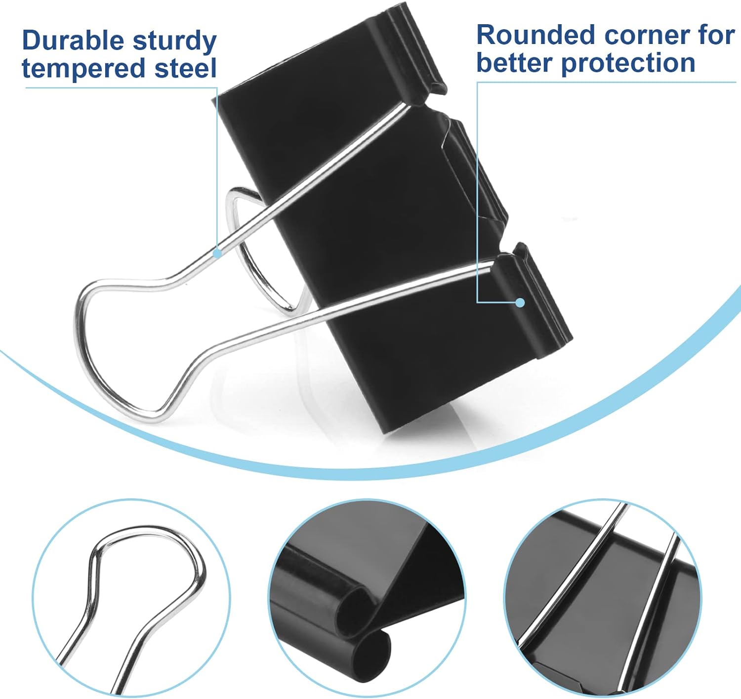 - Easy to Organize: The black binder clips makes it easy to hold lots of loose paper together securely, saying goodbye to cluttered desktops! You can also use it as a cardholder, keeping the handle up to grip the sticky note. Besides, paper clip are perfect for bookmarks, document organization, cable management, and creative projects.