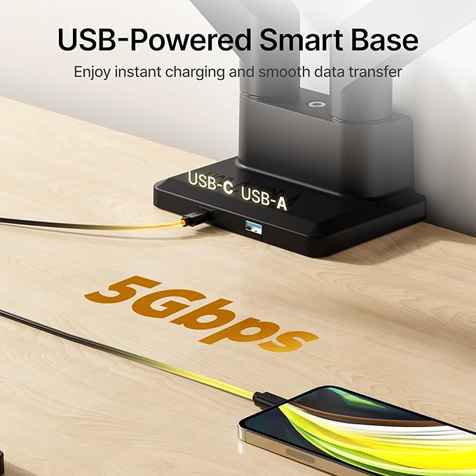 - Clear Desktop Space:monTEK dual monitor mount features a compact low-profile base & elevated dual arms, lifting screens to free desk space. Ultrawide-compatible with integrated cable management and built-in USB ports,the dual monitor arm supports two side-by-side monitors—keeping your workspace sleek, spacious and clutter-free for easy dual-screen use.
