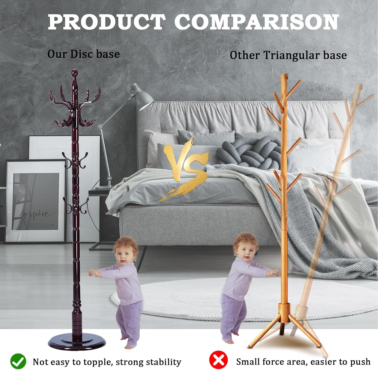 - 【HIGH-GRADE COAT RACKS】This Wooden coat rack is designed in stylish and simple style, made ofenvironmentally friendly high-quality birch material, the bright polished paint and natural wooden make it so generous.