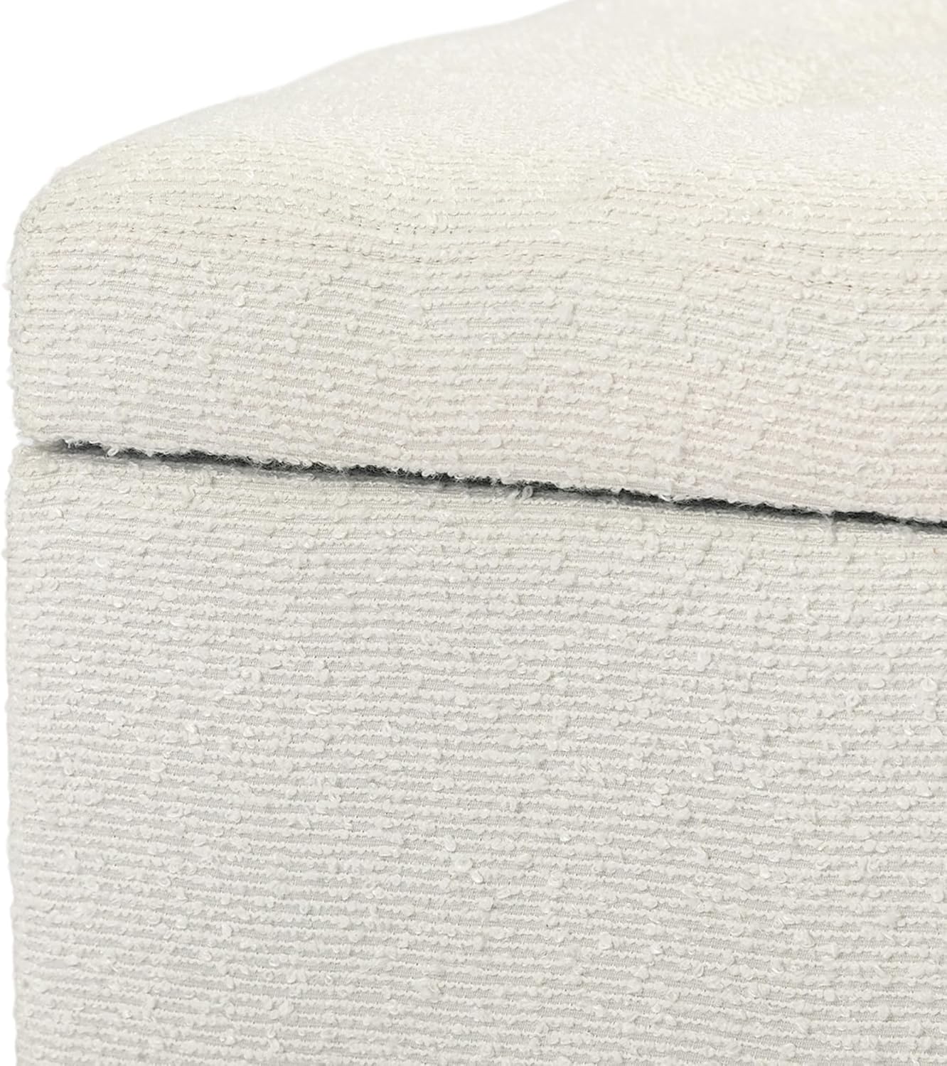 Adeco 18 Inch High Cube Ottoman Storage, Linen Chair Foot Stools, Upholstered Vanity Stool with Hinged Lid, Solid Wood Legs (White Circle Yarn)