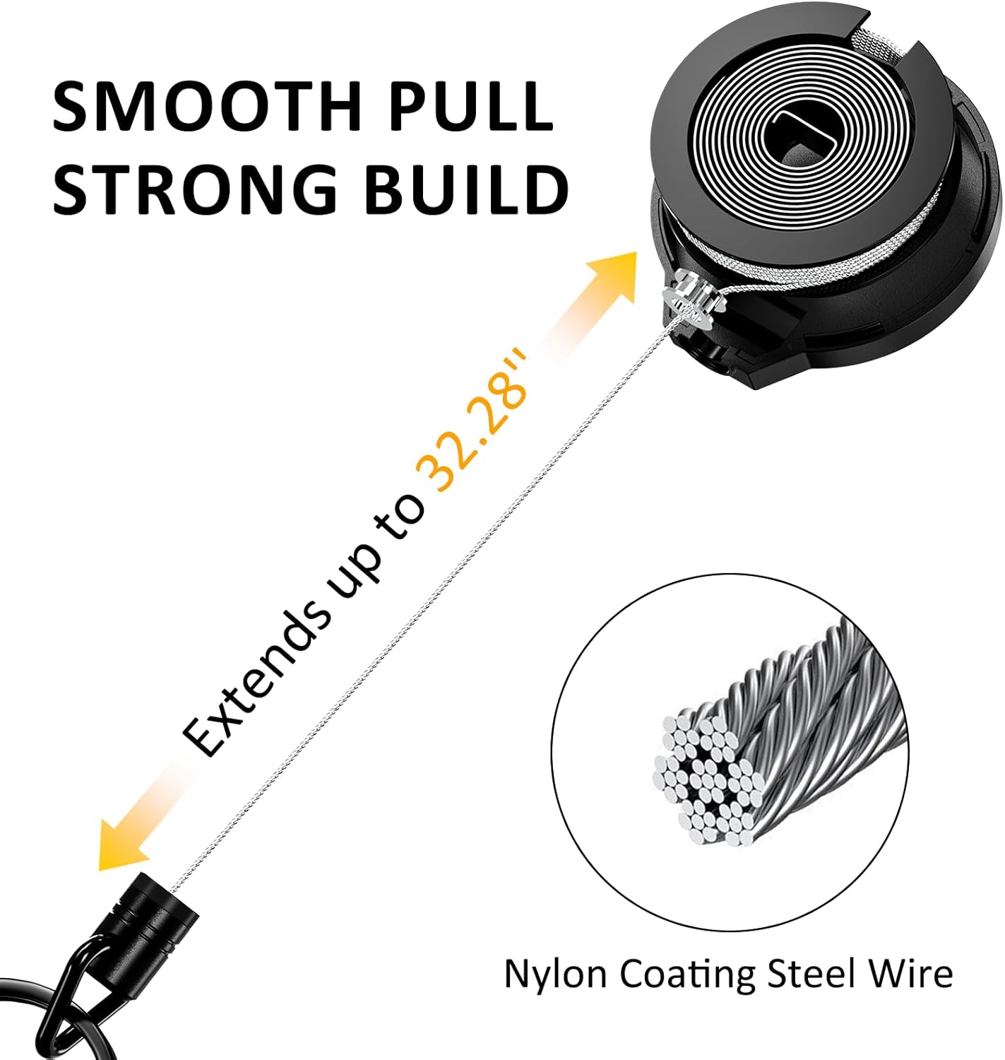 - ššØš§šÆšš§š¢šš§š ššššš¬š¬--The retractable key chain can be attached to your belt or backpack for daily use, eliminating the need to search pockets or bags. The 32.28-inch retractable stainless steel cord allows quick access to keys and tools when you need them.