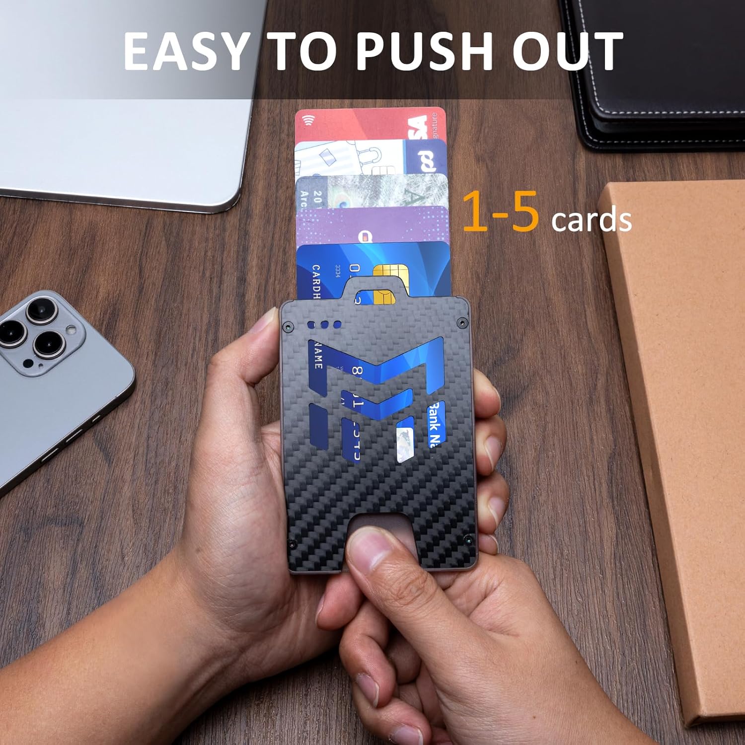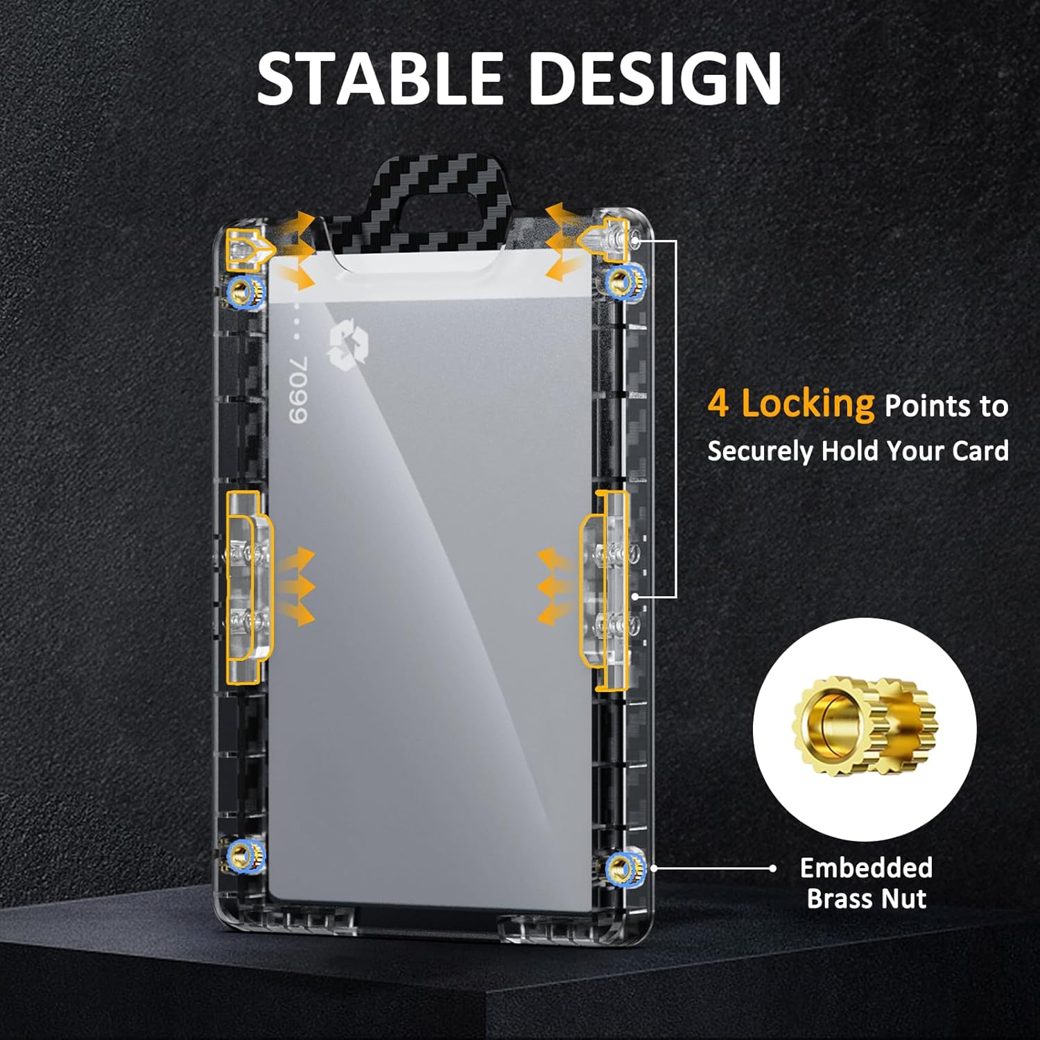 - šš©š š«šššš šššš š ššØš„ššš«--The outer shell is made of ultra-light 3k carbon fiber and PC material, which is lightweight and durable, weighing only 0.91oz. Four elastic points on both sides of the interior ensure your cards are securely fastened. Recessed brass nuts at the four corners securely fasten the carbon fiber plate and polycarbonate shell, eliminating the worry of screws falling out and the badge holder falling apart.