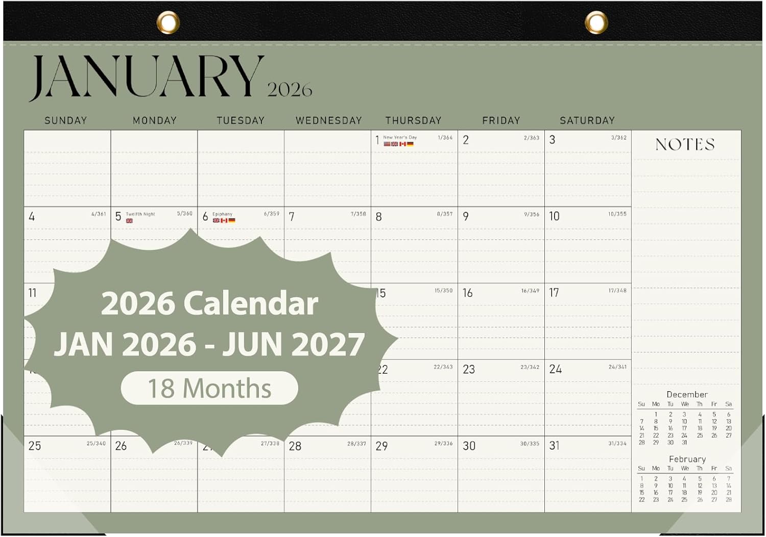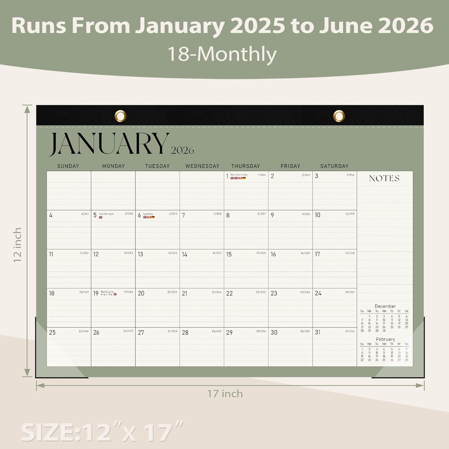 - Size : 17"x12"(Jan 2026-Jun 2027)
