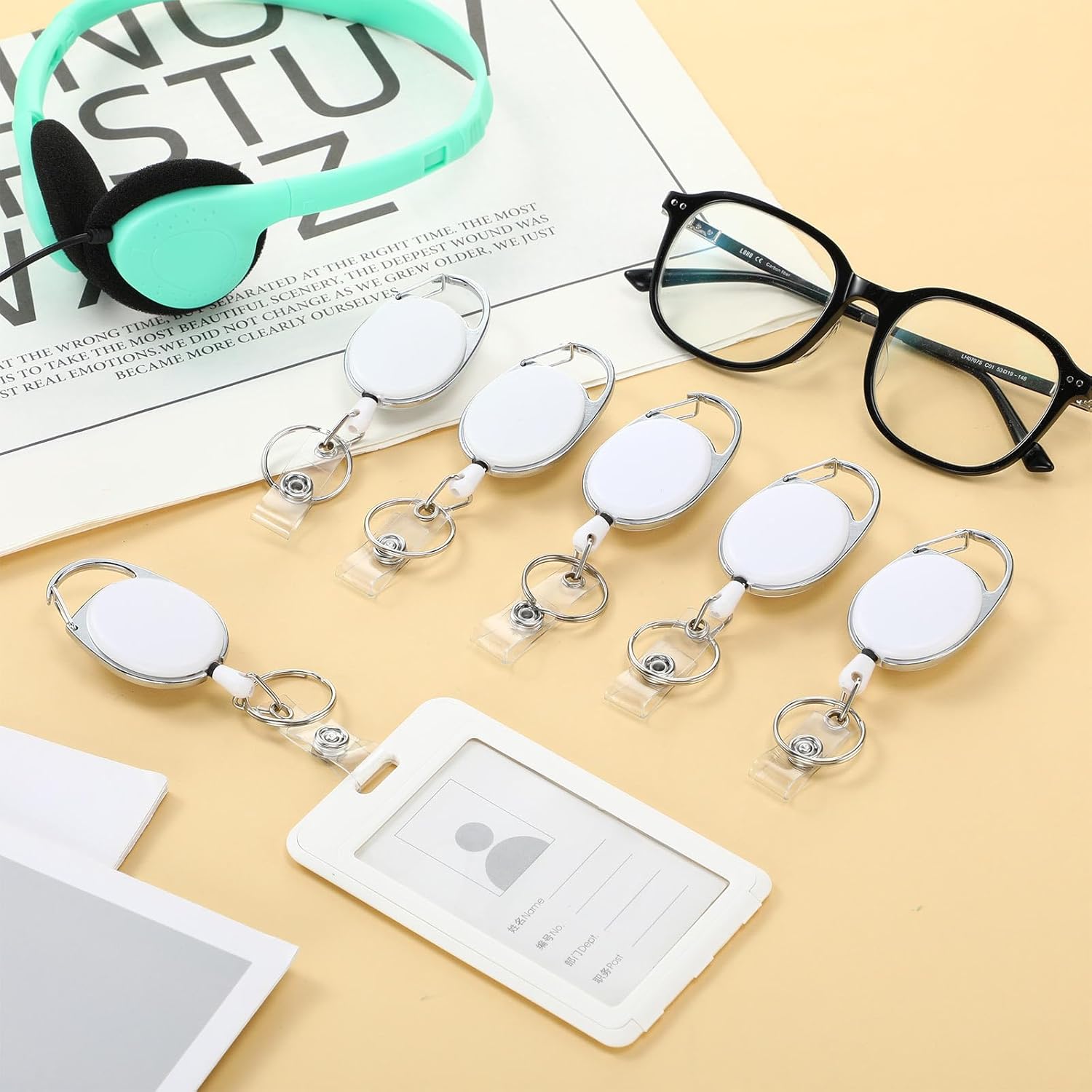 Honoson 30 Pcs Heavy Duty Retractable Badge Reels Batch ID Badge Holder Retractable Clip Bulk Key Holder with Ring for Office Worker Employee, Doctor Nurse Gifts (White)