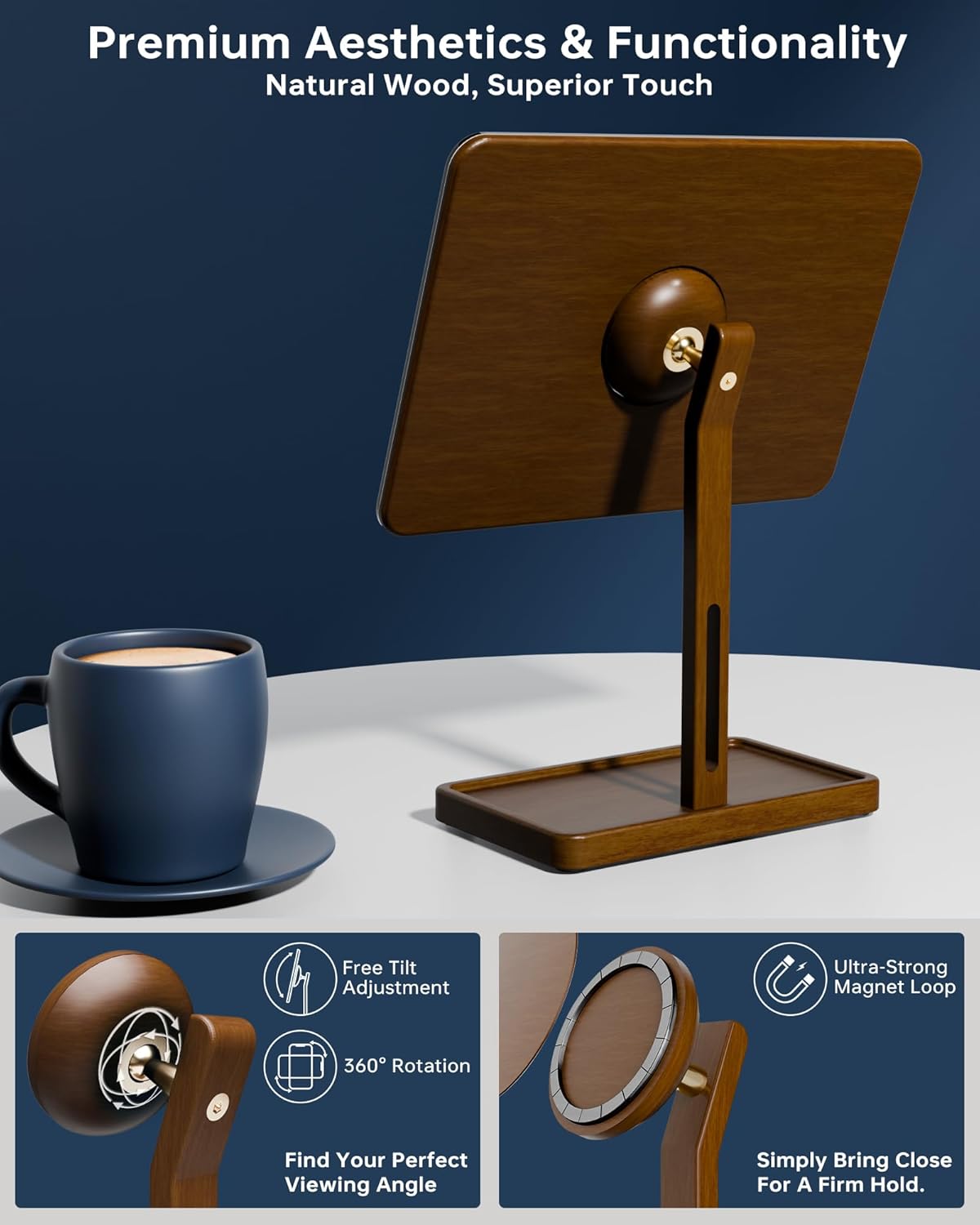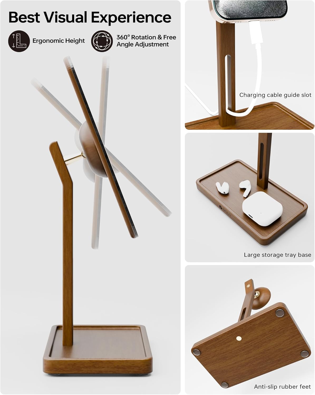 - LARGE & STABLE WOOD BASE | The weighted and widened solid wood base guarantees ultimate stability, preventing tipping. It also provides ample space to organize your desk accessories , like pens, keys, or airpods, keeping your desk tidy.