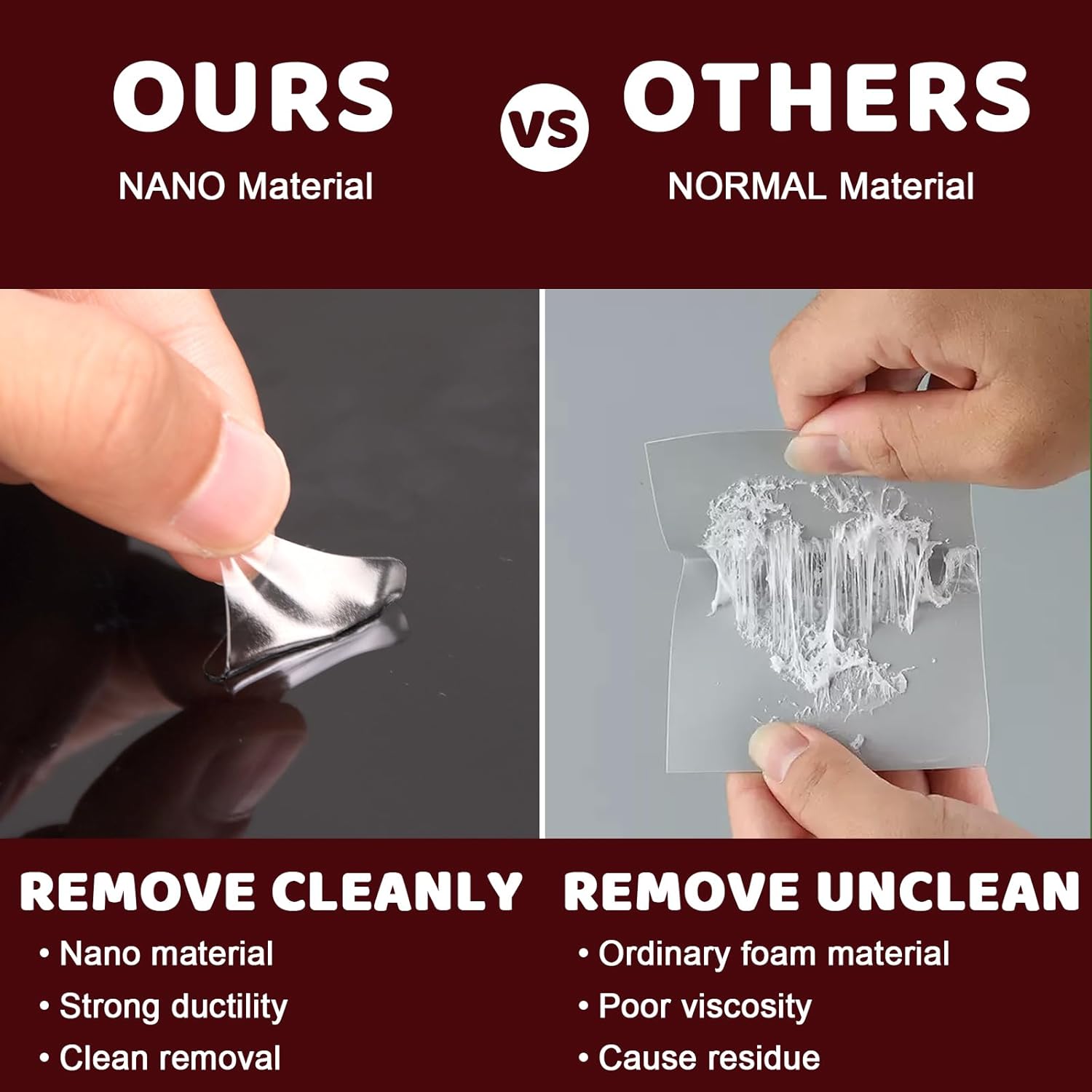 - 【Premium Soft Nano Gel – Invisible & Surface-Safe】Crafted from high-quality soft acrylic nano gel, this nano double sided adhesive tape is flexible, tear-resistant, and virtually invisible when applied. It adheres seamlessly to textured, curved, or smooth materials like glass, fabric, ceramic, and wood. Compared to double sided sticky putty or double sided tape for walls no damage, our nano tape double sided design offers a softer, more refined finish for delicate surfaces.