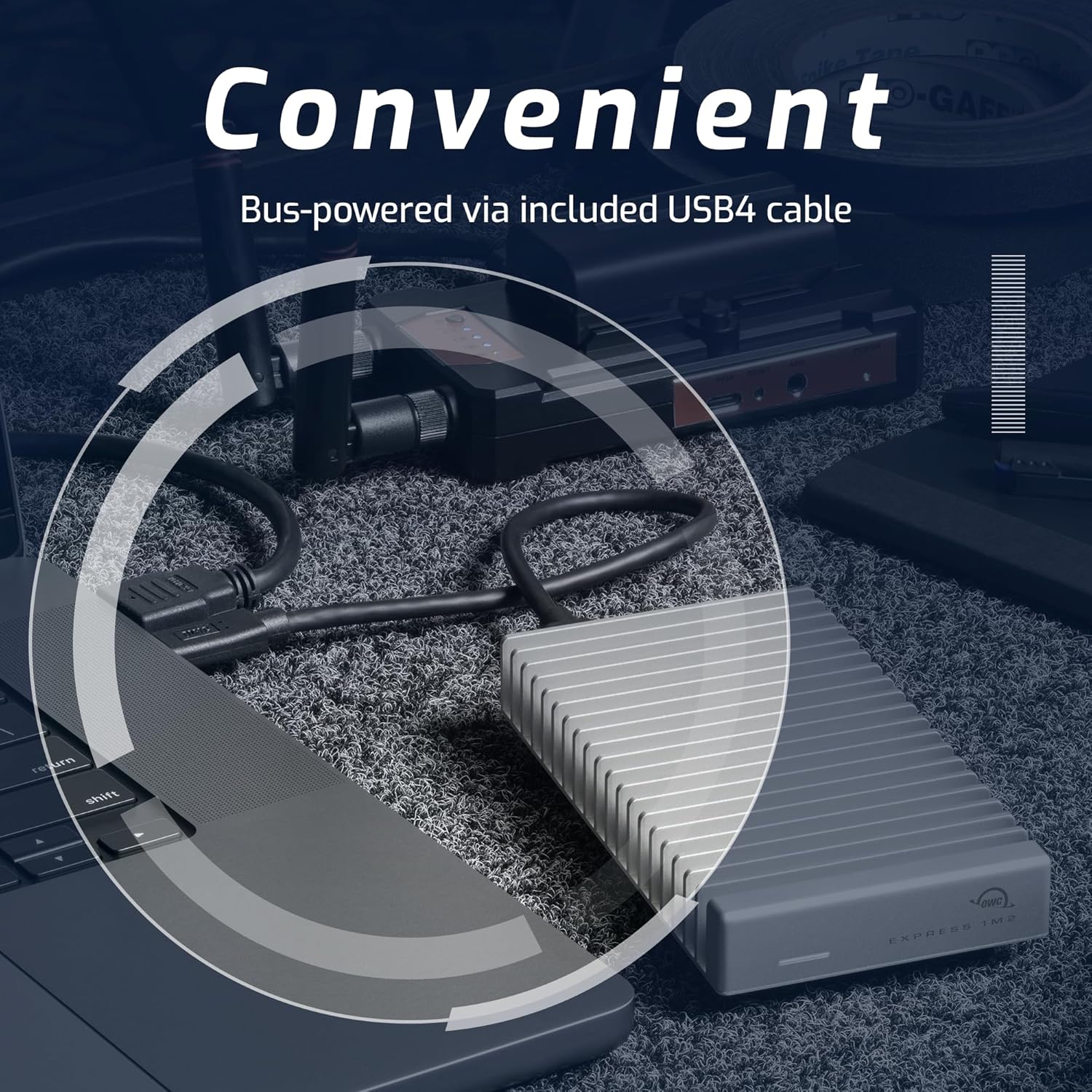 OWC Express 1M2 80Gb/s Portable NVMe SSD USB4 (Thunderbolt Compatible/USB-C) Ultra Fast External SSD Drive with Aluminum Heat Sink Enclosure (Enclosure Only)