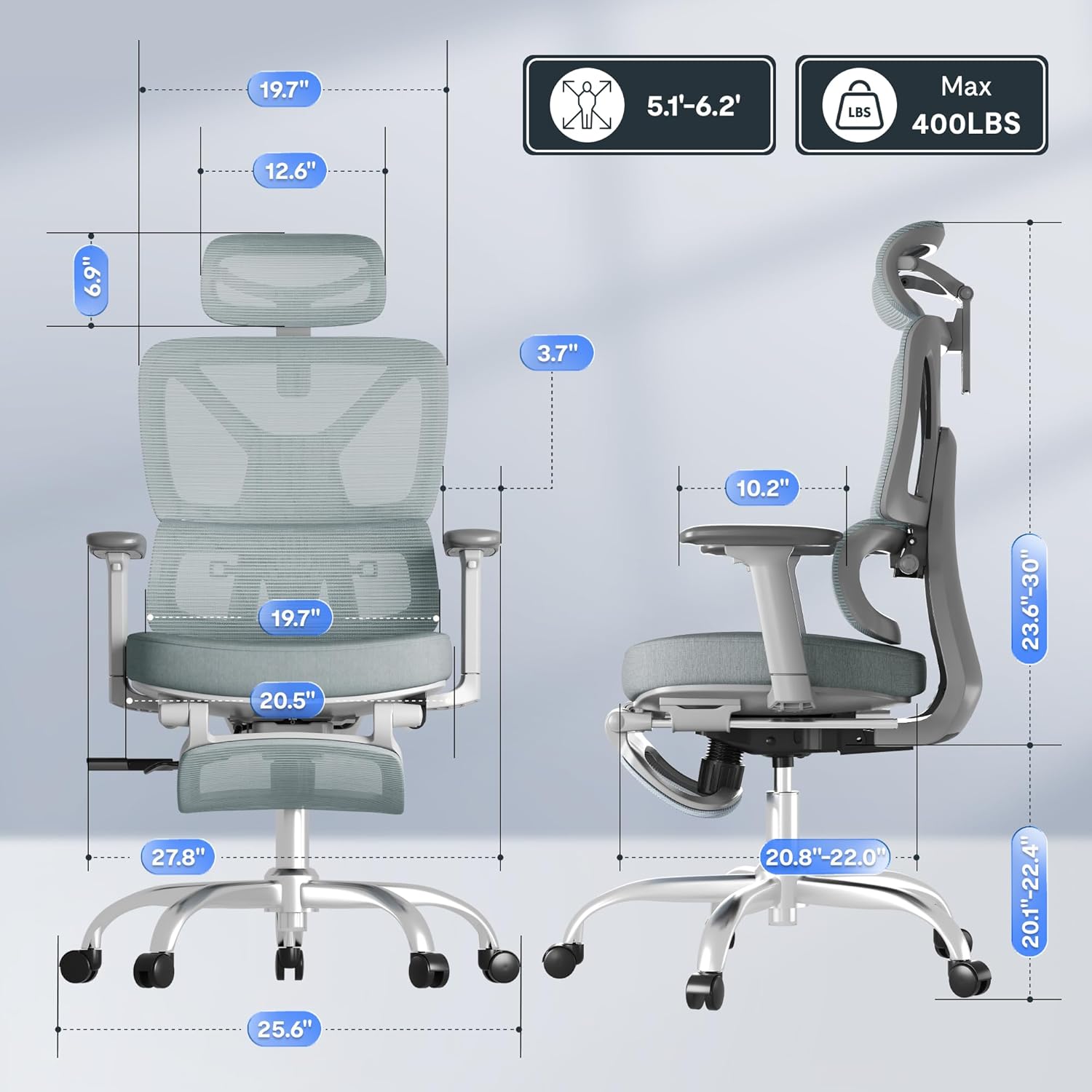 FLEXISPOT ErgoX Premium Ergonomic Office Chair with Footrest- Adjustable 3D Armrests, Dynamic Lumbar Support, Recline & Tilt Function, Mesh Seat, for Home & Office Use,Foam Blue