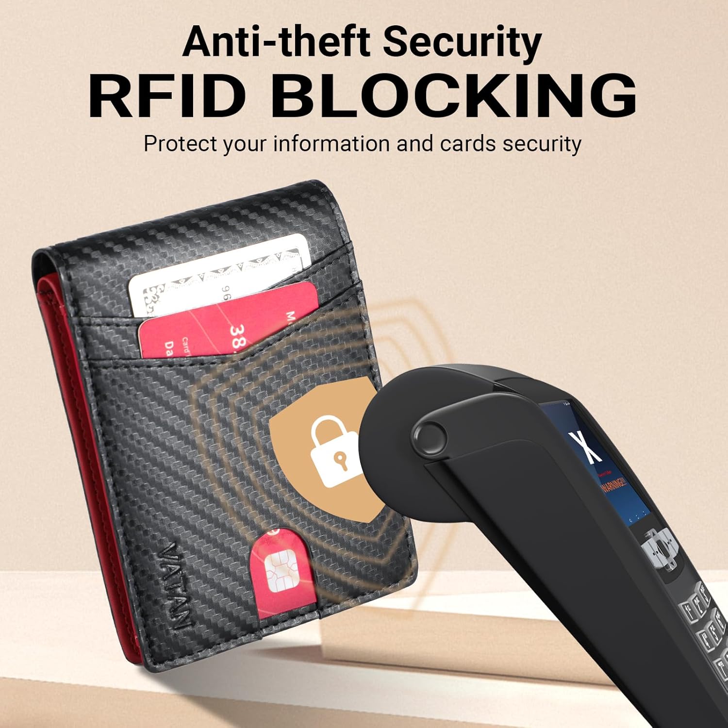 VATAN Wallet for Men, Mens Minimalist Wallet Credit Card Holder, Slim Leather Rfid 2 ID Window Large Capacity With Gift Box (Carbon black and Red)