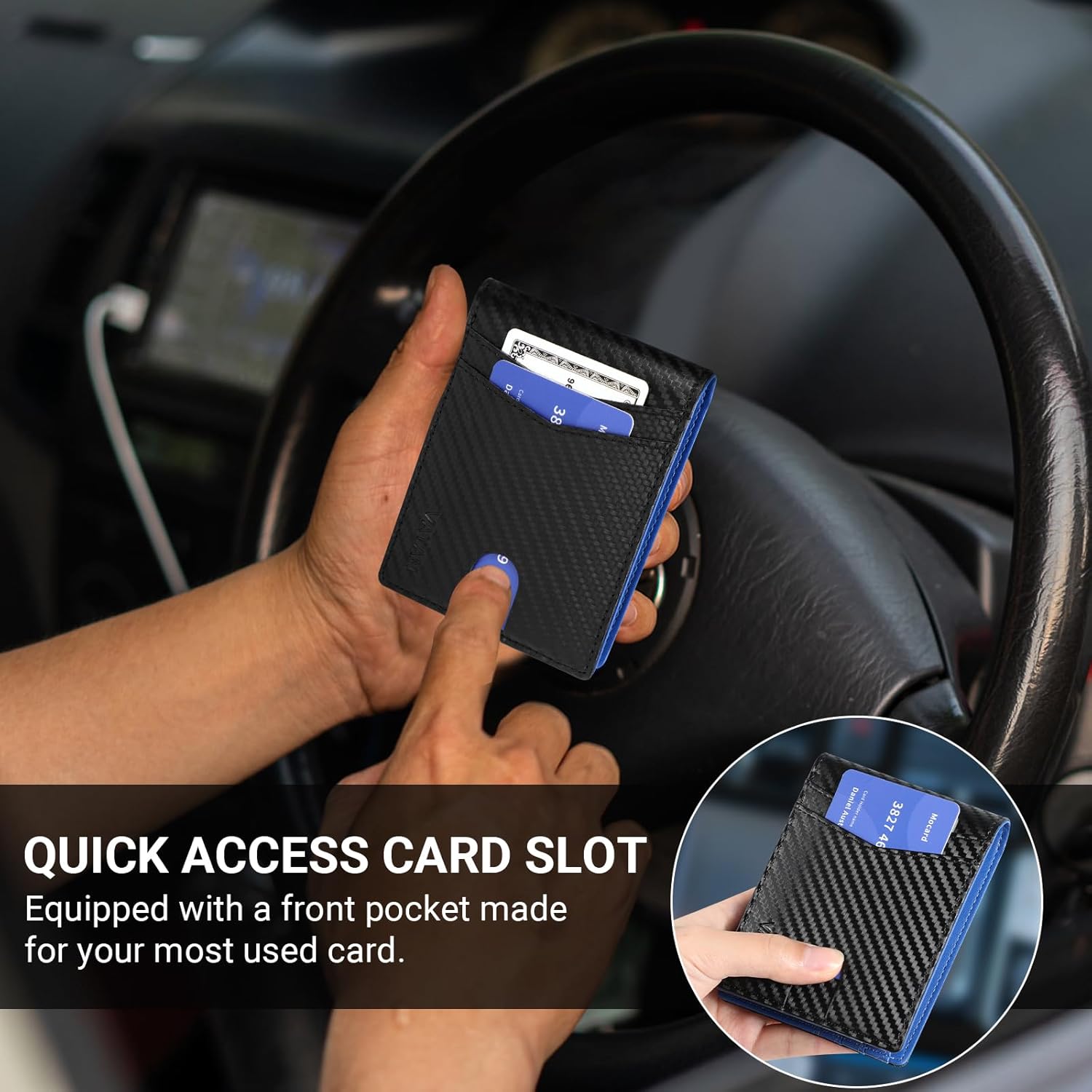 VATAN Wallet for Men, Mens Minimalist Wallet Credit Card Holder, Slim Leather Rfid 2 ID Window Large Capacity With Gift Box (Carbon Black and Blue)