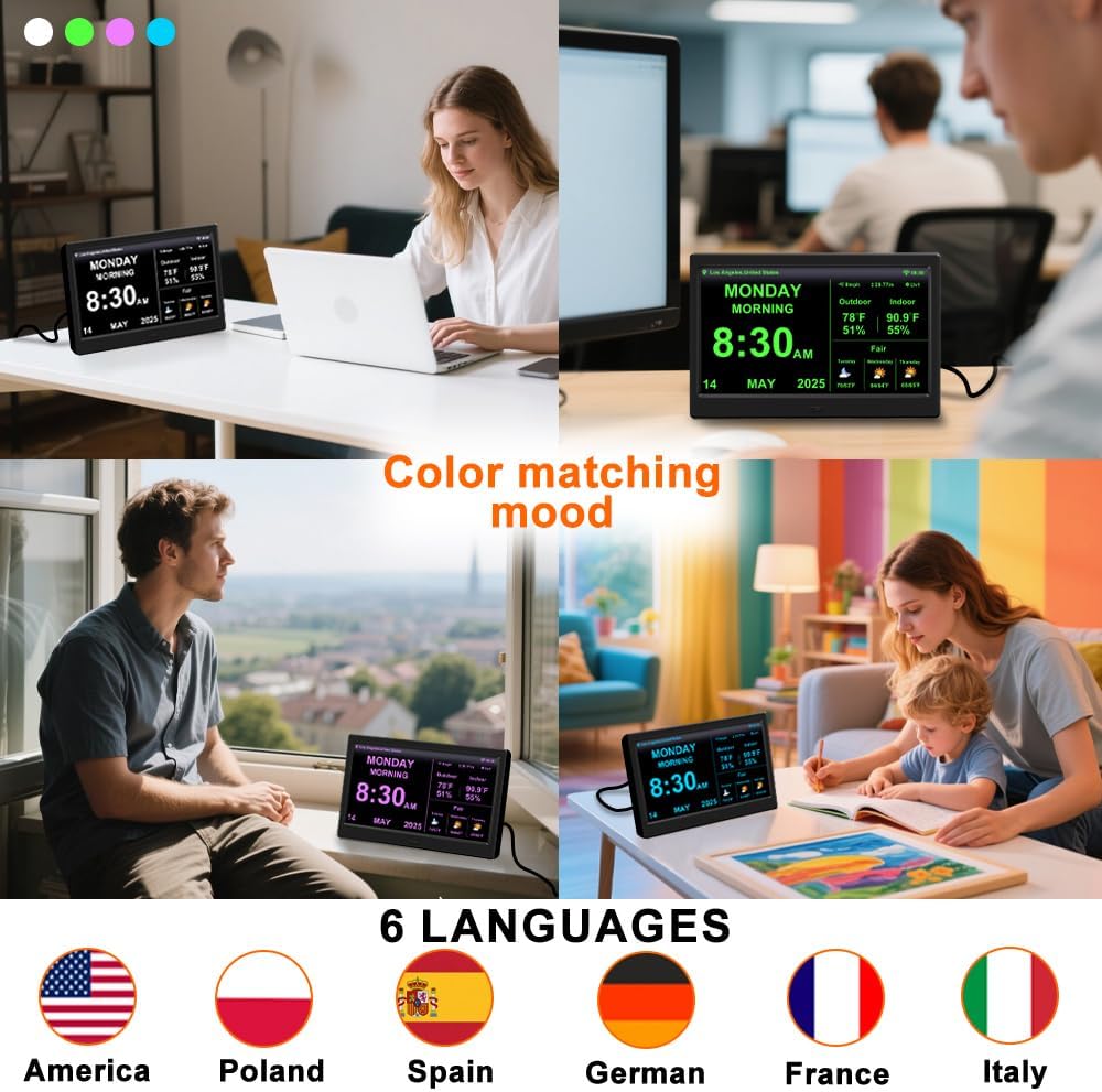 2025 Digital Clock with Weather Forecast & Temperature/Humidity Large Display,Auto Time Sync, Custom Alarms & Medication Reminders, Elderly Memory Loss
