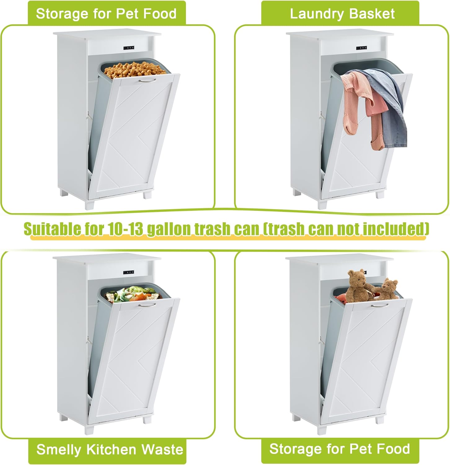- 【Versatile Cabinet Trash Can】With pull-out drawers, this hidden trash can is perfect for kitchen, home, apartment, dormitory, laundry room. You can store kitchen waste, kitchen supplies, pet food, and more. Our hamper cabinet can be used as white laundry cabinet, the top is good for displaying decorations and daily essentials.