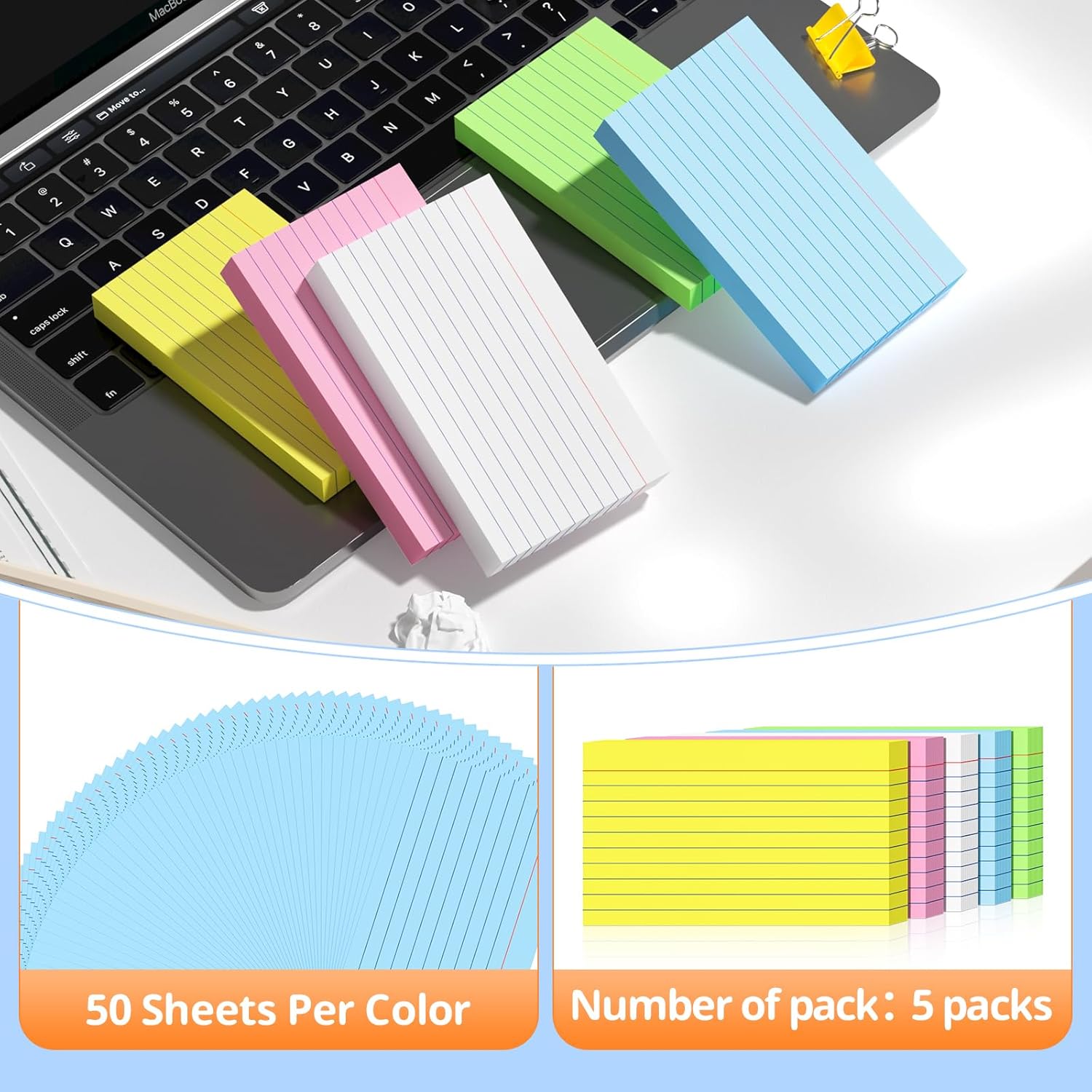 - 【Package included】You will get 250PCS colored index cards, including 5 different colors, 50 pieces of each color. Adequate quantity and diverse colors to meet your daily study and work needs.