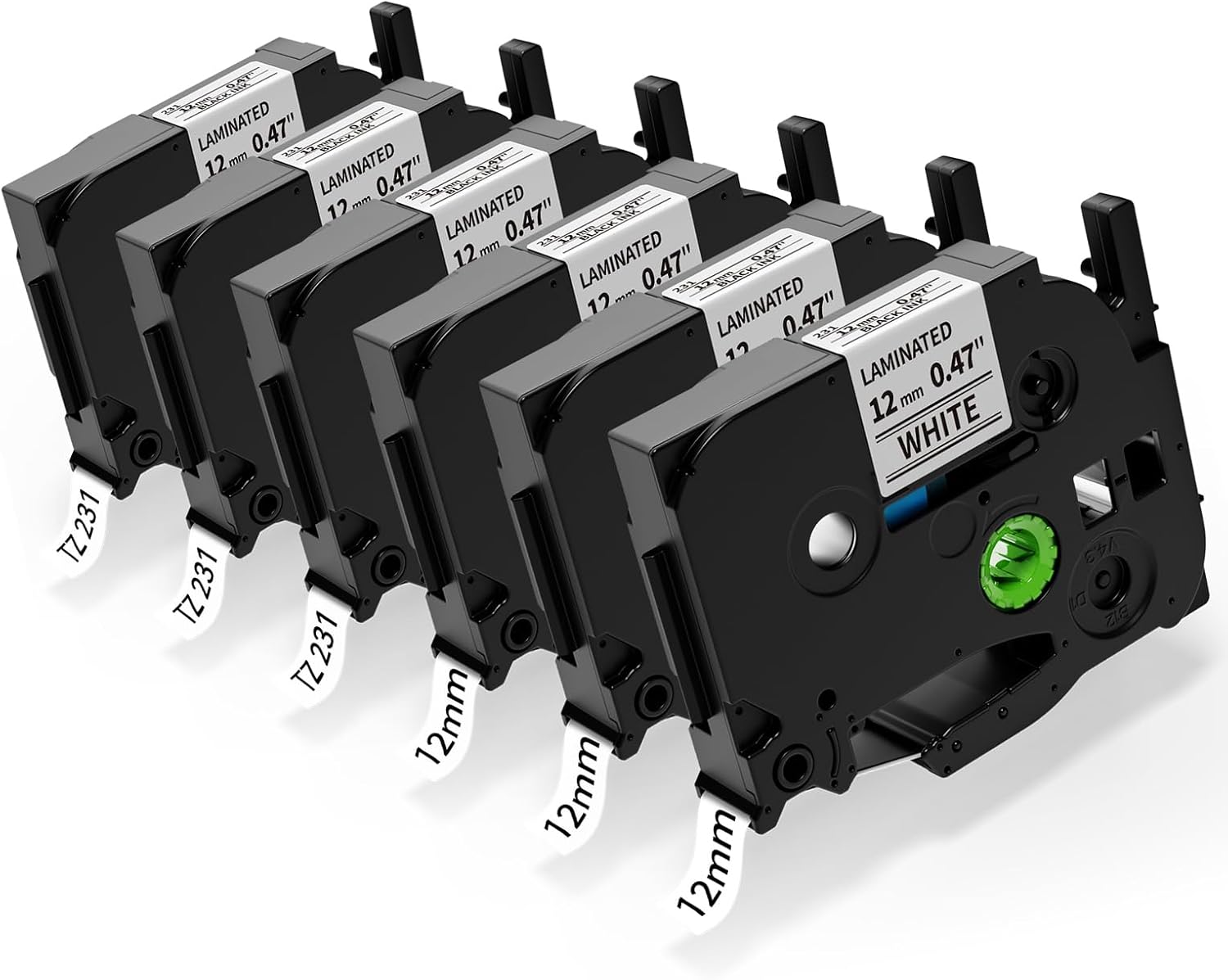 - Aonomi Compatible with P Touch Label Maker Tape Information: 6-Pack Tze Tz Tape 12mm 0.47 Laminated White Replacement for Brother Label Maker Tape TZe231 TZ231 TZ231s TZ-231 TZc-231 TZe AZe Tz tape, Color: Black Ink on White Tape, Width: 0.47 Inch (12mm), Length: 26.2 Feet (8m)