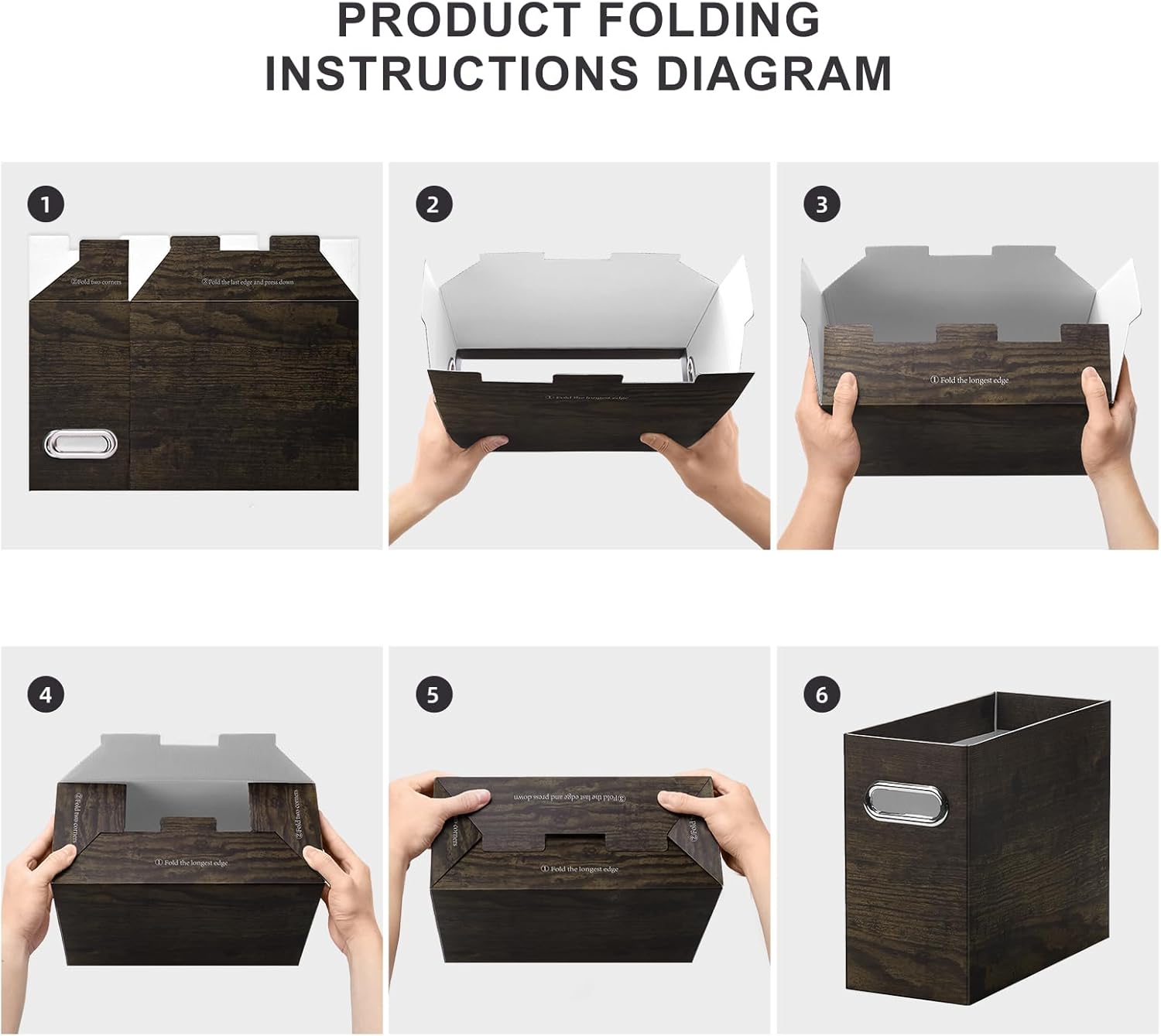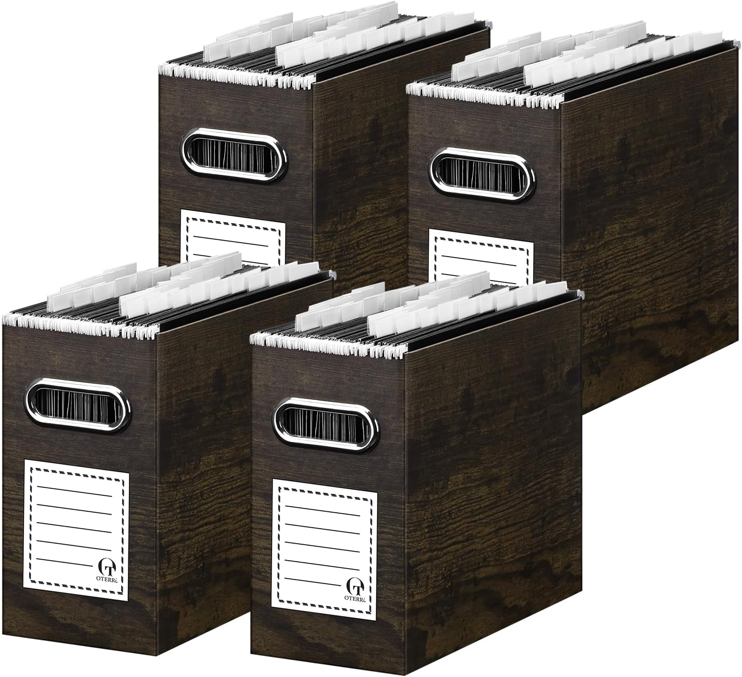 Oterri File Organizer - Small Cardboard Storage Box, Collapsible and Portable With Handle for Letter Size Files, Hanging Folder Box (Brown Wood Grain Print, Letter Size - 4 Packs)