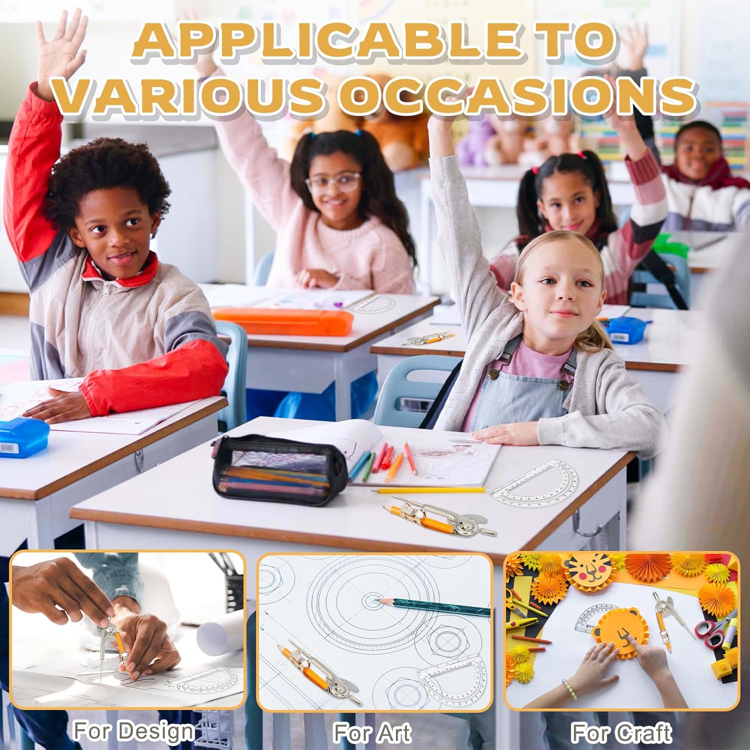 - Widely Used: this exquisite compass drawing tool is widely used in various fields, including mathematics, engineering, carpentry, arts, and drawing. Whether you're a student, teachers, architects, engineers, mathematicians, artists, or a designers, this practical and multifunctional set helps you get the job done quickly and easily
